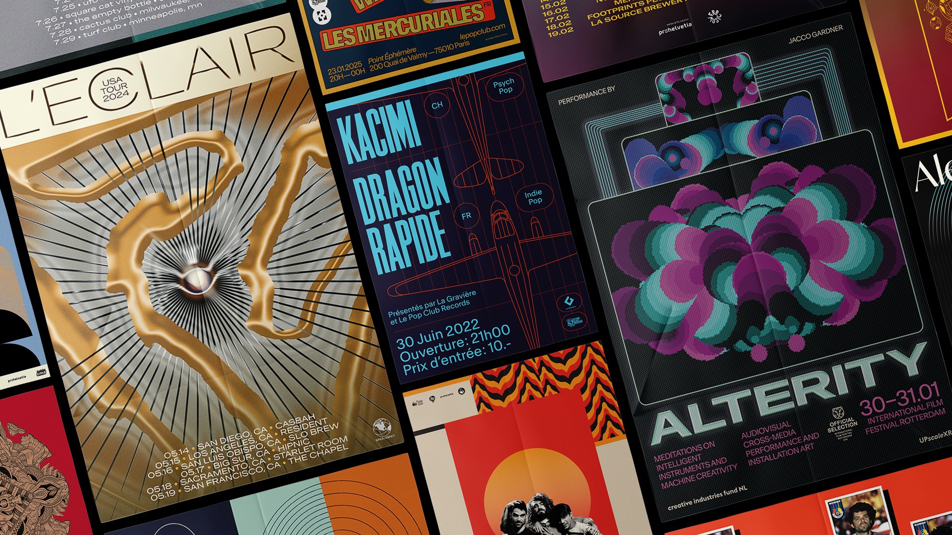 Posters designed to promote concerts, tours, and releases, capturing the energy and visual language of independent music scenes.