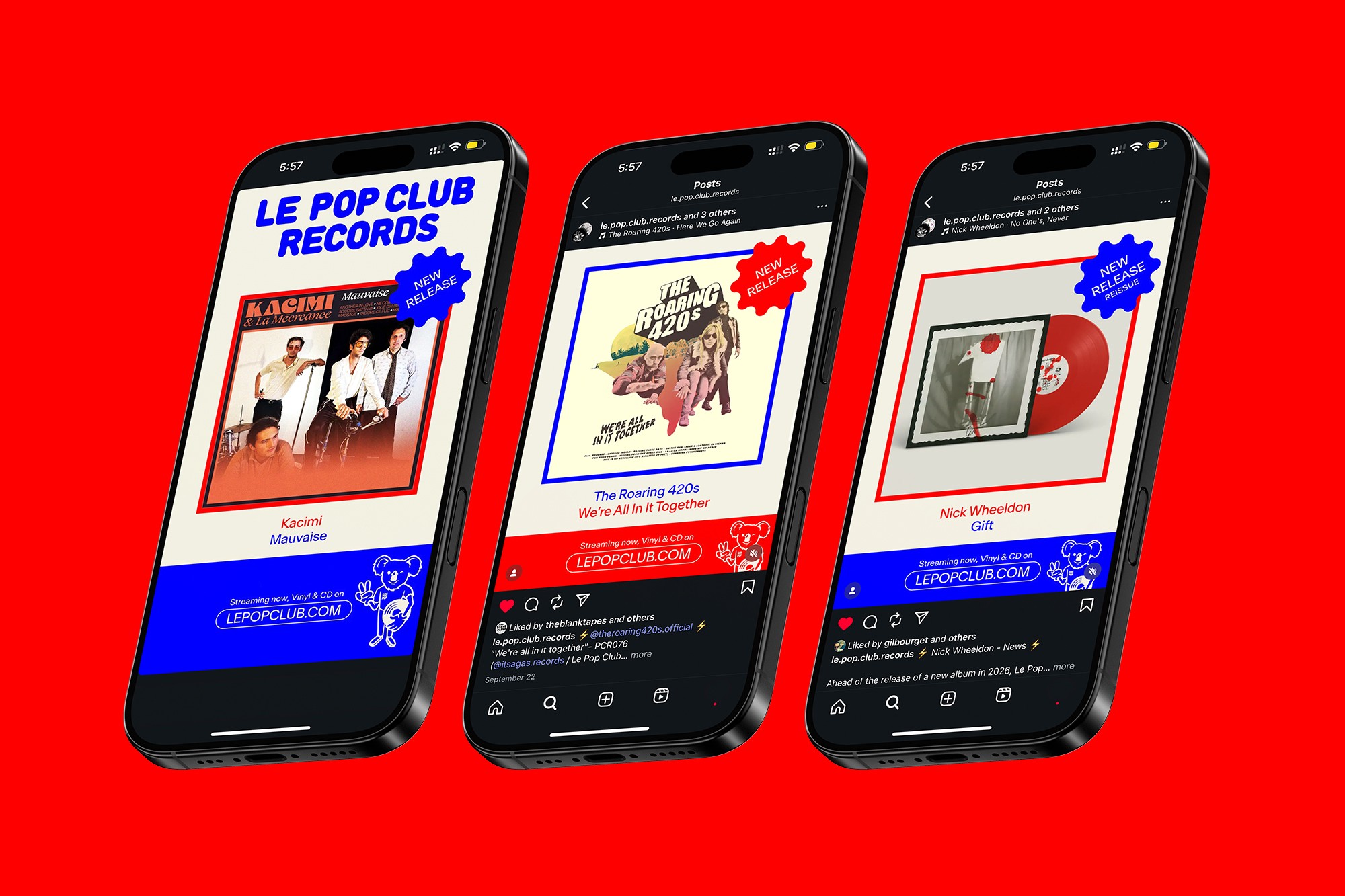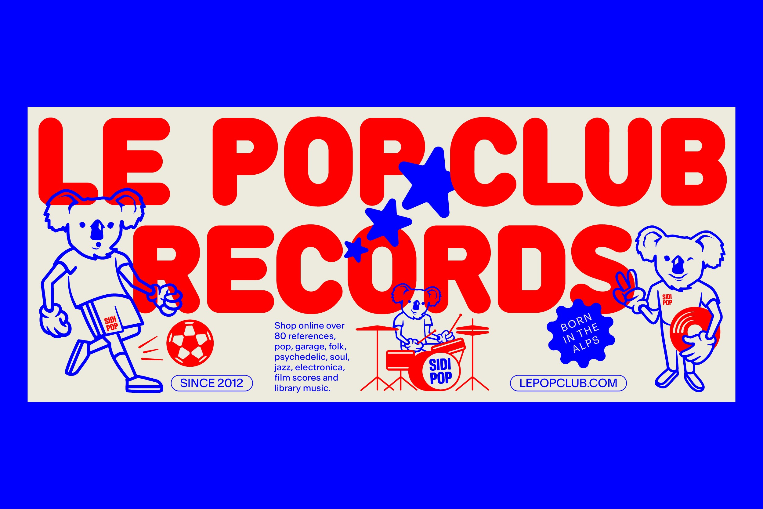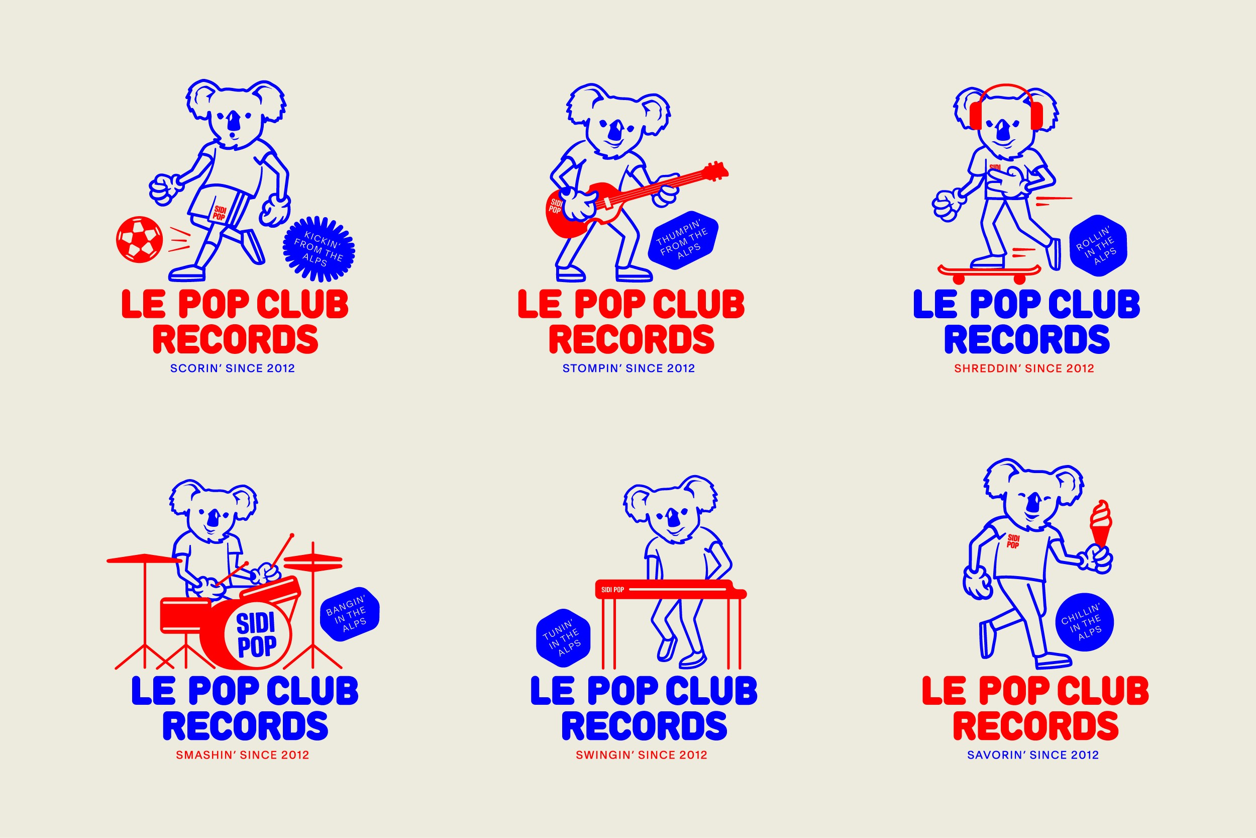 Le Pop Club, a Swiss-French independent label founded in 2012, has built a catalogue of nearly a hundred vinyl releases across pop, folk, jazz, and film soundtracks. The challenge: to create a visual identity reflecting its musical diversity and collaborative ethos. The solution: a character-driven system conveying the label’s eclectic, independent spirit. Original koala head by Josue Roca Calderon.