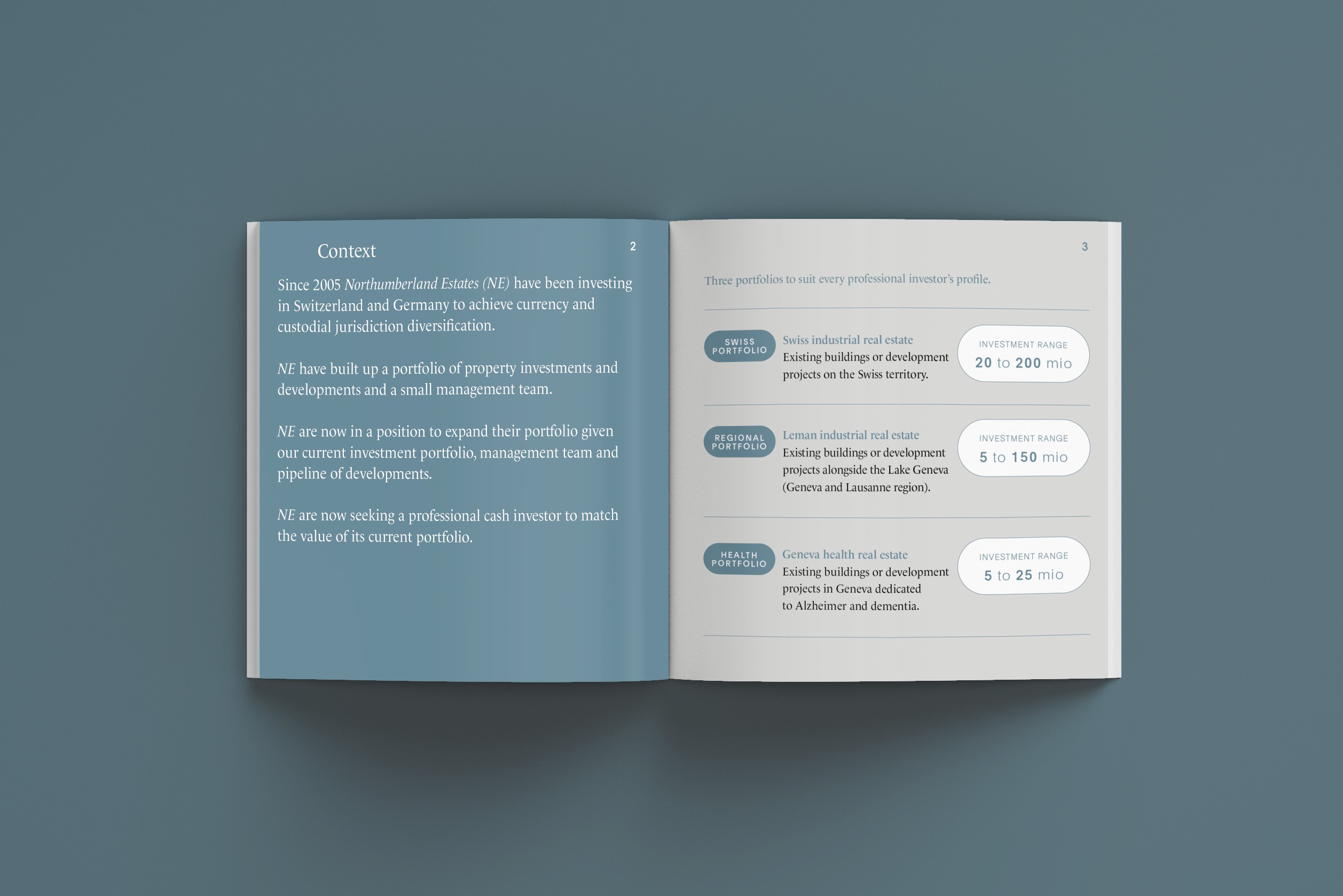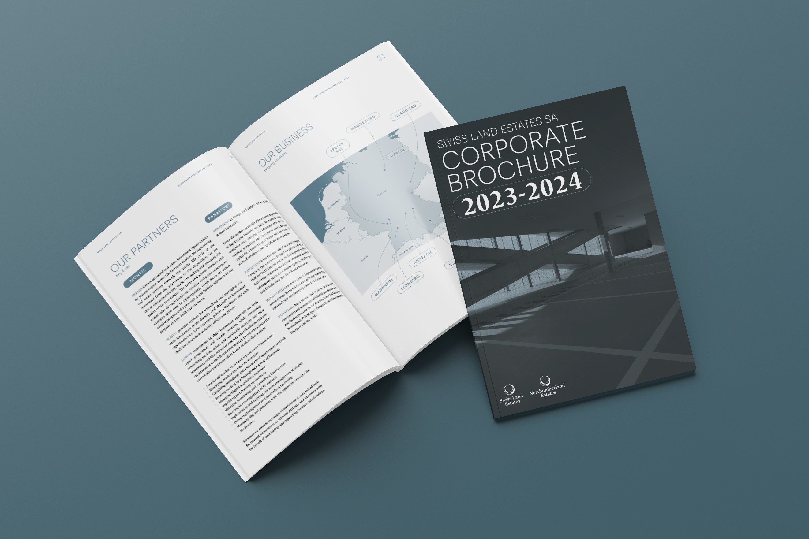 Swiss Land Estates SA, the Swiss branch of Northumberland Estates, required a strong brand identity to reflect its expertise in industrial developments across Switzerland, Germany, and the U.S. This project involved designing their website, corporate materials and internal documents that align with the company’s values and commitment to sustainable growth.